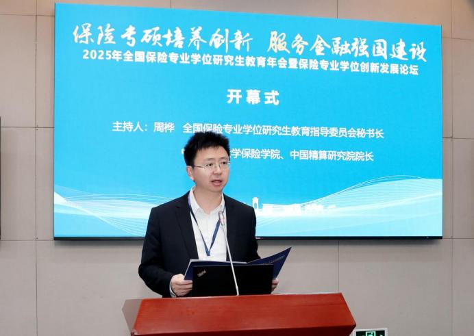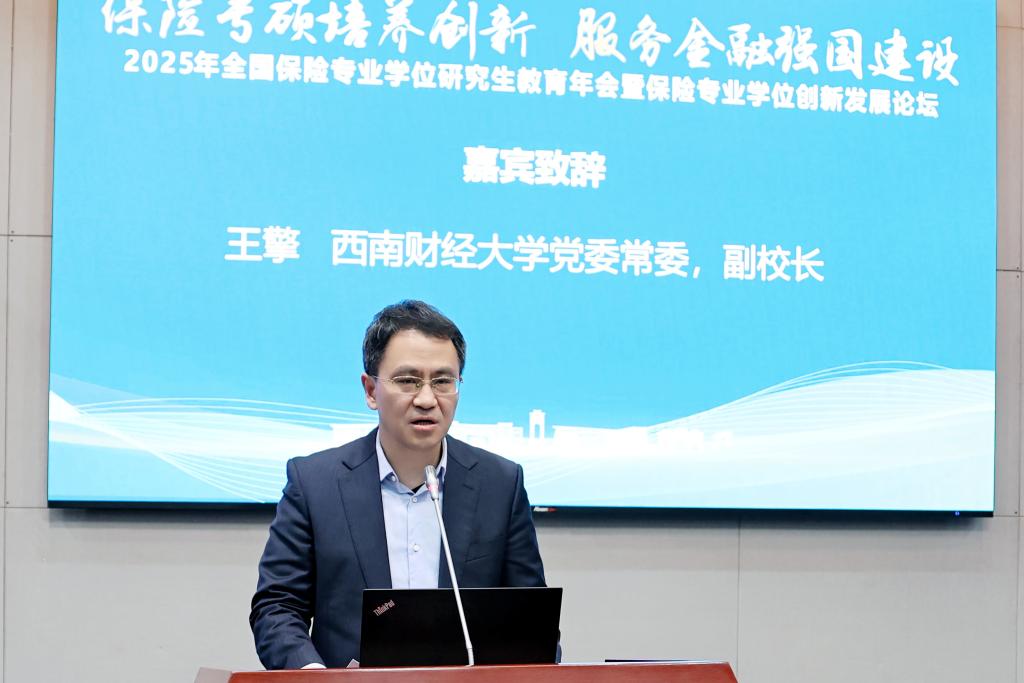 王擎对各位嘉宾的到来表示热烈欢迎,并深情回顾了西财百年办学历史,介绍了西南财经大学及保险学科的发展成就。他表示,生成式AI、气候风险、长寿风险、网络安全风险等新兴风险汹涌而至,保险业正处于跃迁的关键拐点,保险专业学位教育必须超前识变、积极应变、主动求变。西南财经大学将在教指委统筹下,与兄弟高校一道,聚焦科技赋能、绿色转型、养老金融、普惠金融,为为服务国家战略和行业高质量发展贡献西财方案和西财智慧。