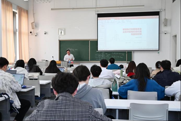 讲座最后,朱文林先生建议同学们加强跨学科学习,未来保险行业亟需兼具法律、保险与金融知识的复合型人才。互动环节中,他就法律保险发展前景、实务风控要点等问题与师生深入交流。